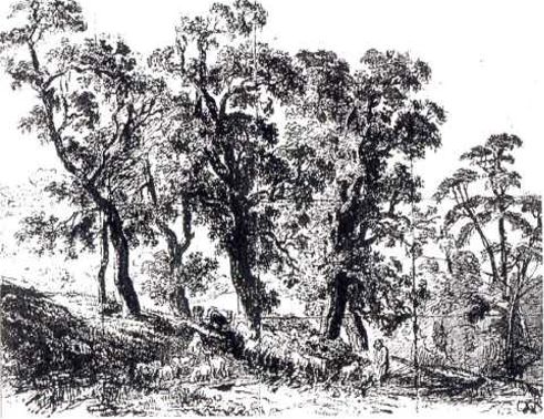 ( Rötelzeichnung, teilweise mit der Feder ausgearbeitet und sanft aquarelliert:
