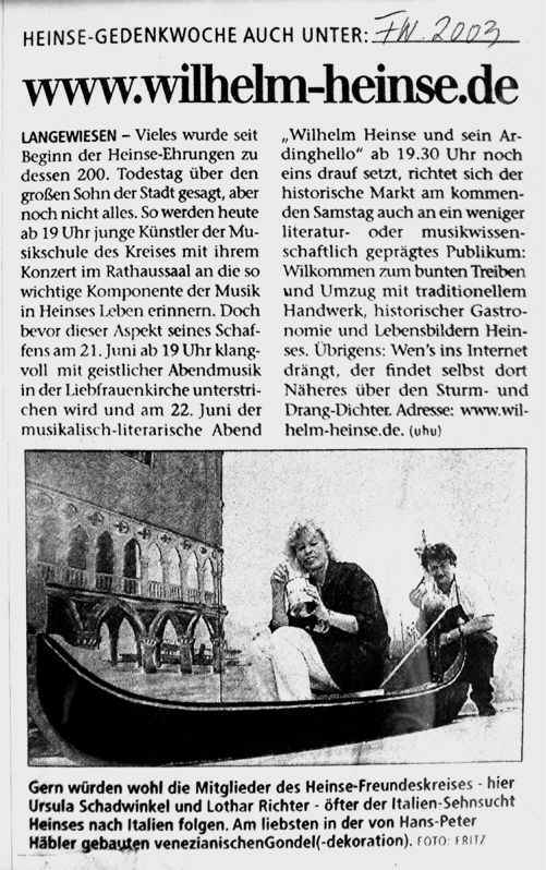Pressestimmen spiegeln die Bemühungen des Heinse-Freundeskreises e.V. wider, das öffentliche Bewusstsein zur Bedeutung J. J. W. Heinses in seiner und der heutigen Zeit zu fördern.