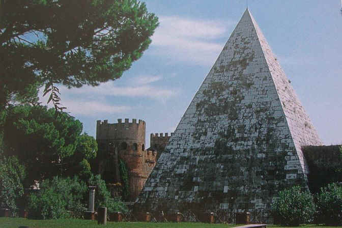 Pyramide des Gaius Cestius. Im Hintergrund die Porta Ostiense.